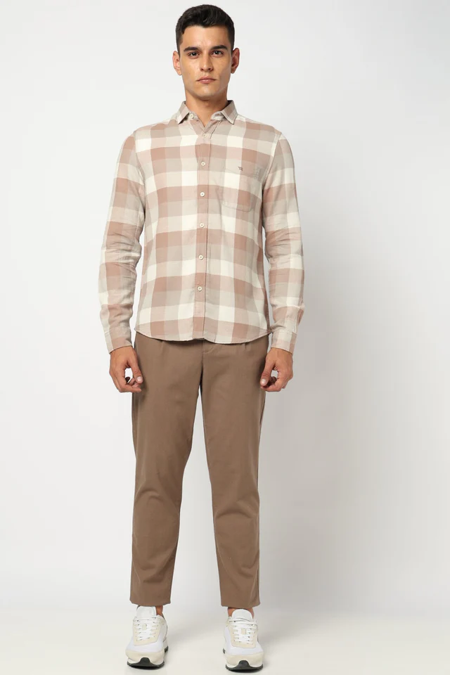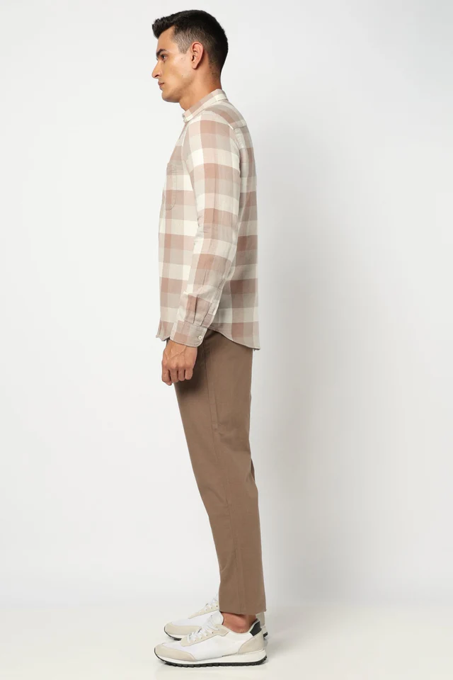 Refresh your wardrobe with this sophisticated Light Brown Checkered Tailored Fit Shirt, designed for the modern man who values both style and comfort. Crafted from high-quality cotton blend fabric, this shirt features a subtle checkered pattern in warm earthy tones, adding a touch of elegance to your everyday look.